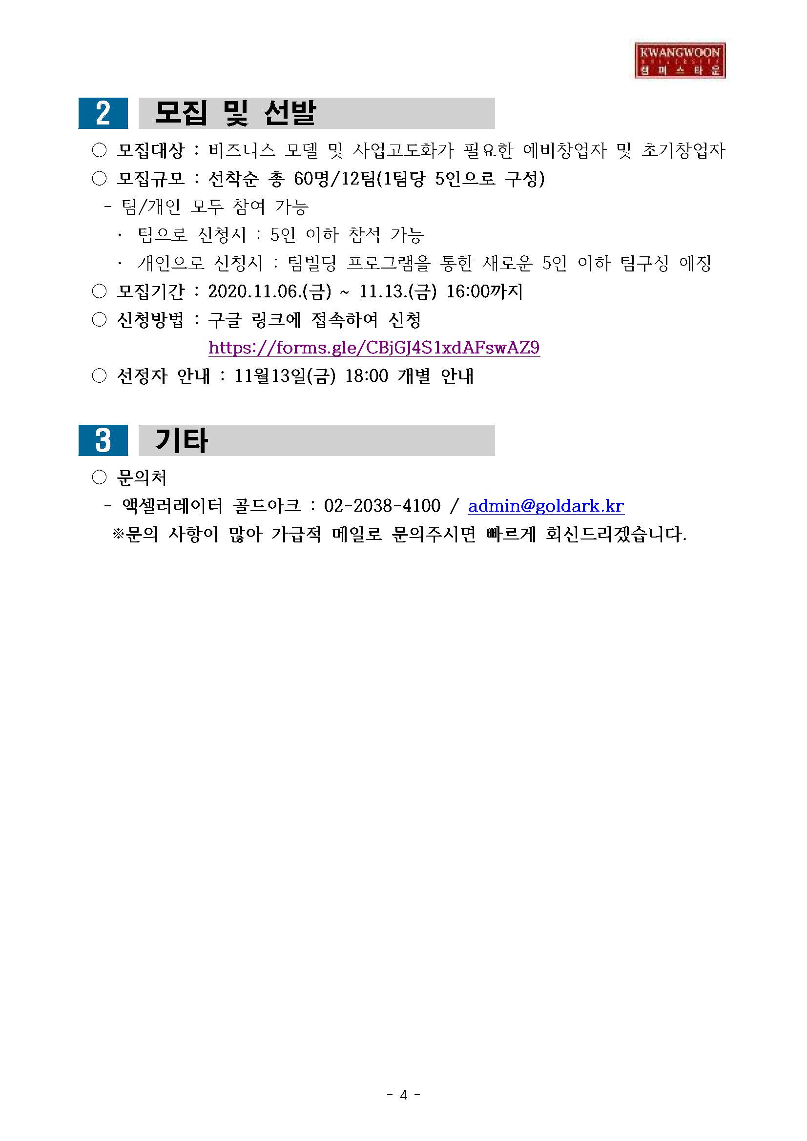 노원에 있는 광운대 캠퍼스타운과 골드아크가 온라인 창업캠프를 운영하네요.