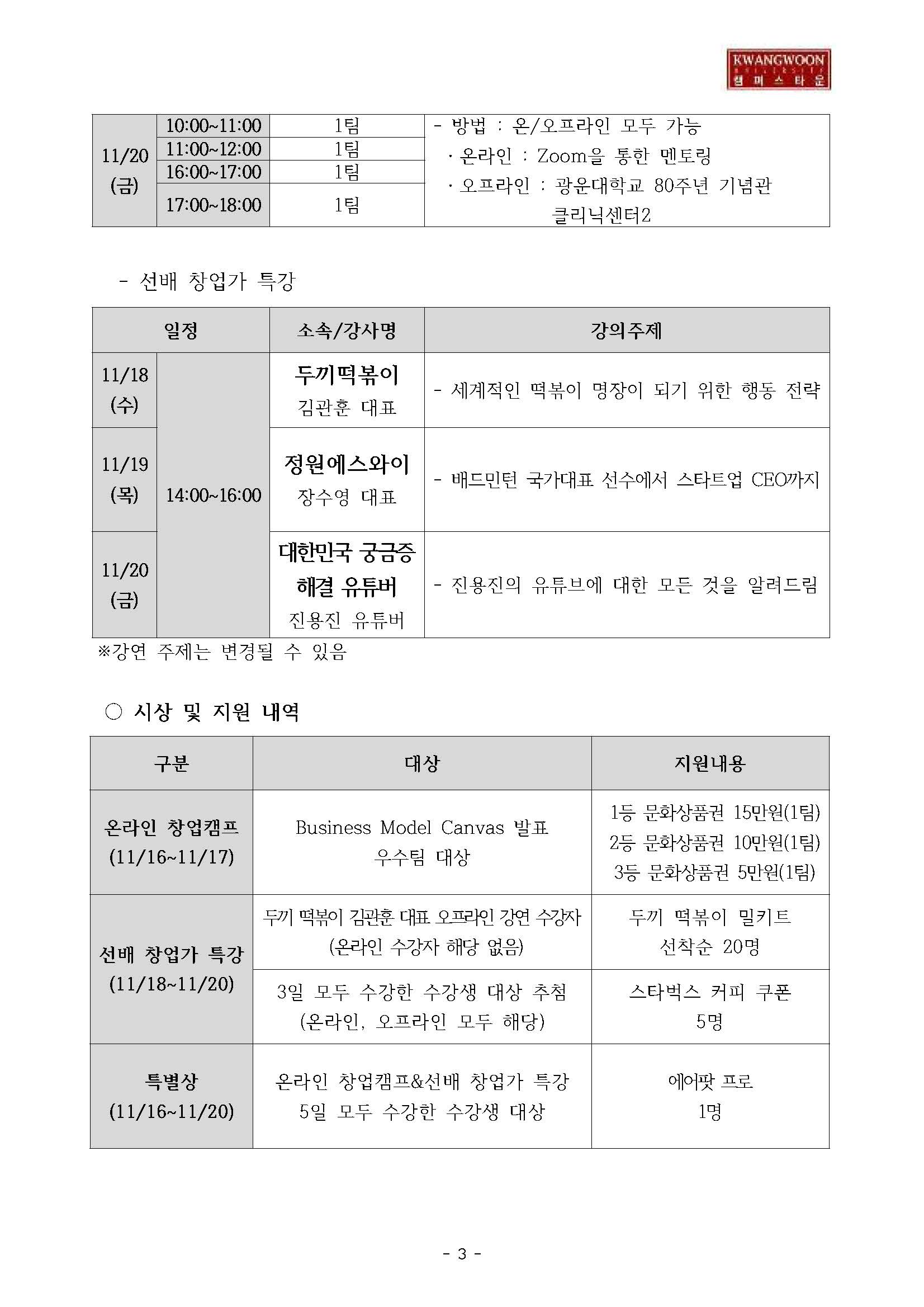[온라인][캠프]2020년 광운대 캠퍼스타운 온라인 창업캠프 모집 공고