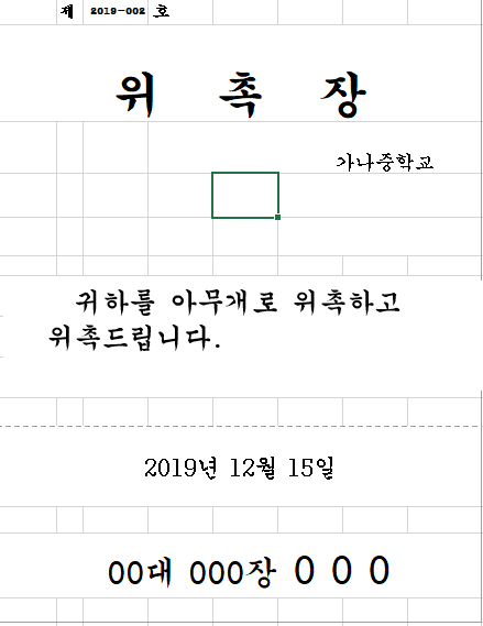 예) 위촉장, 00대 00장 000, 중간 멘트