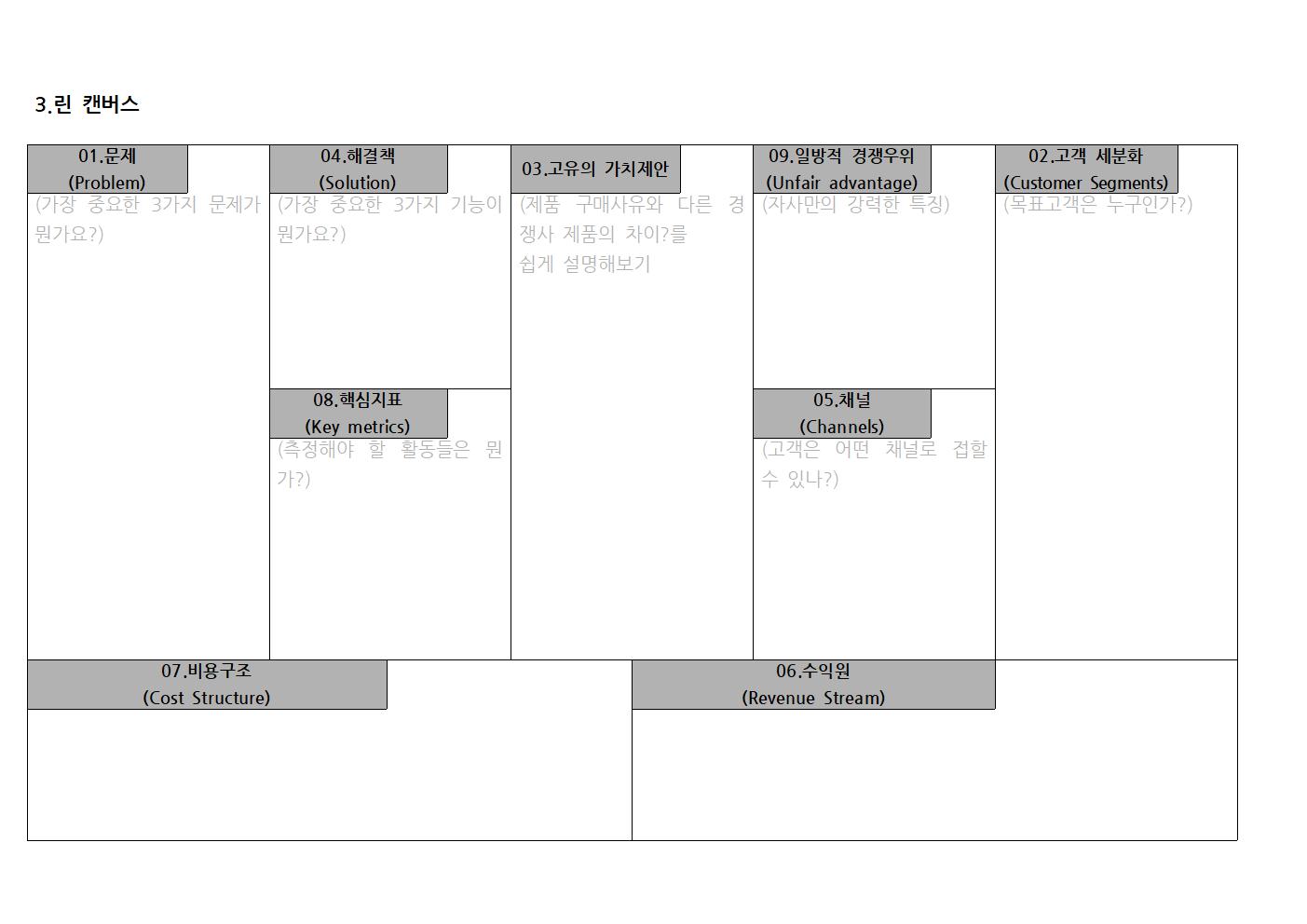 앞서 9캔버스를 1장짜리 사업계획서라고 했는데요.