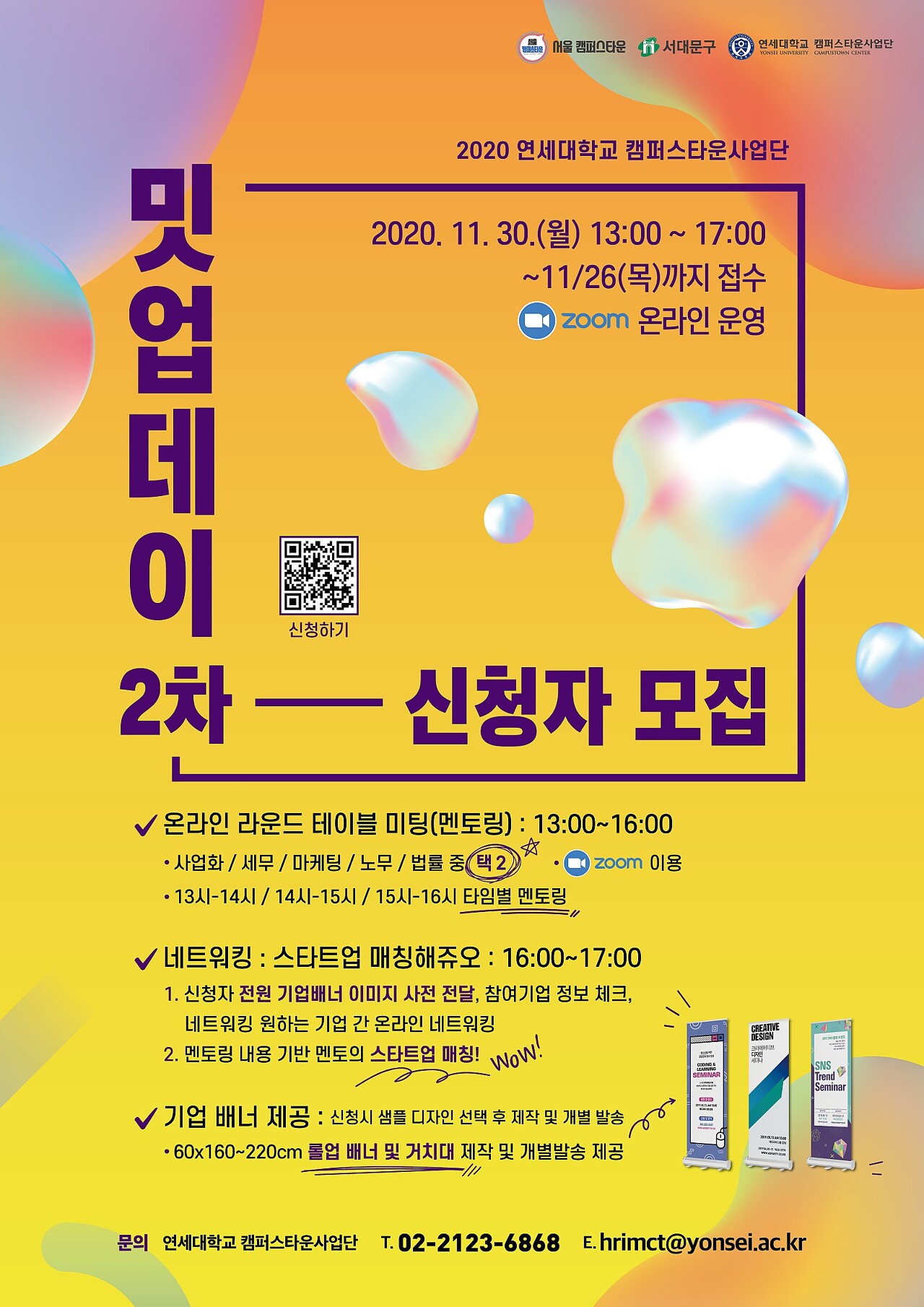 안녕하세요연세대학교 캠퍼스타운사업단입니다!초기 스타트업 인적 네트워크 확대 및 구축을 위한2020 ...
