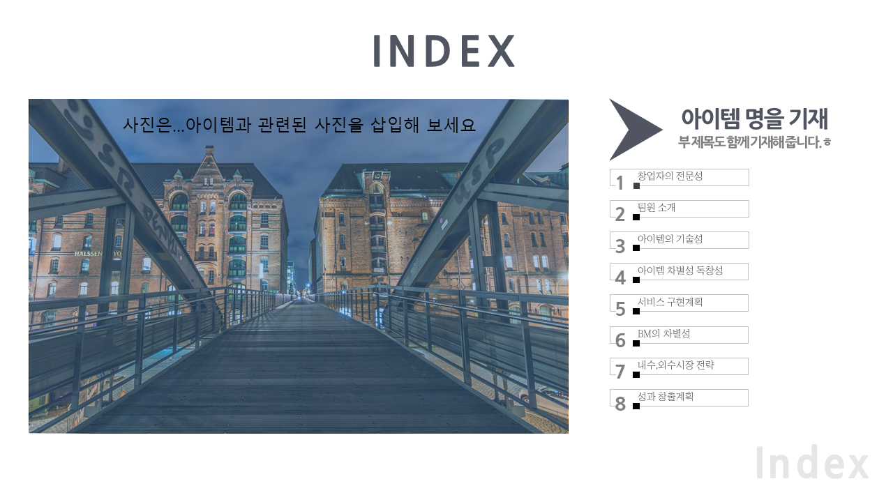 (본인의 이력을 가장 앞장에 두고 그 아이템에 대한 설명을 쉽게 설득시키는 구조입니다.)