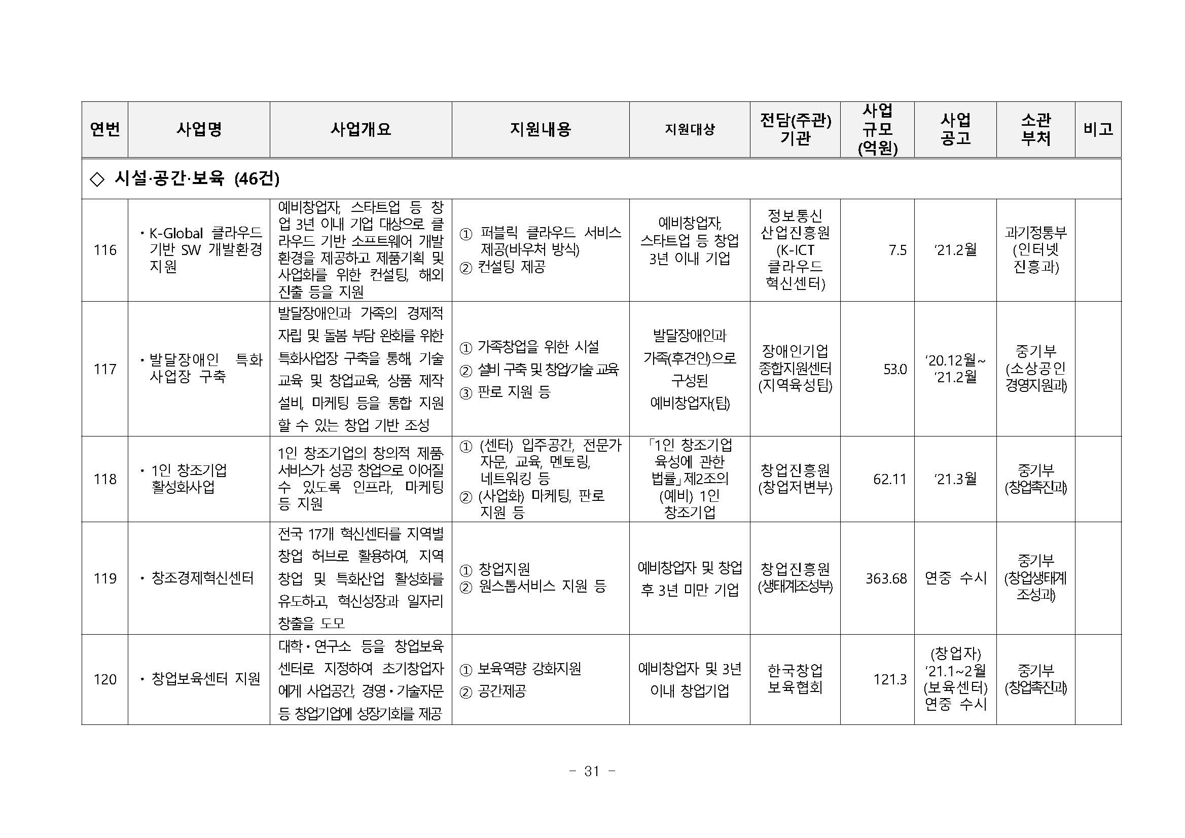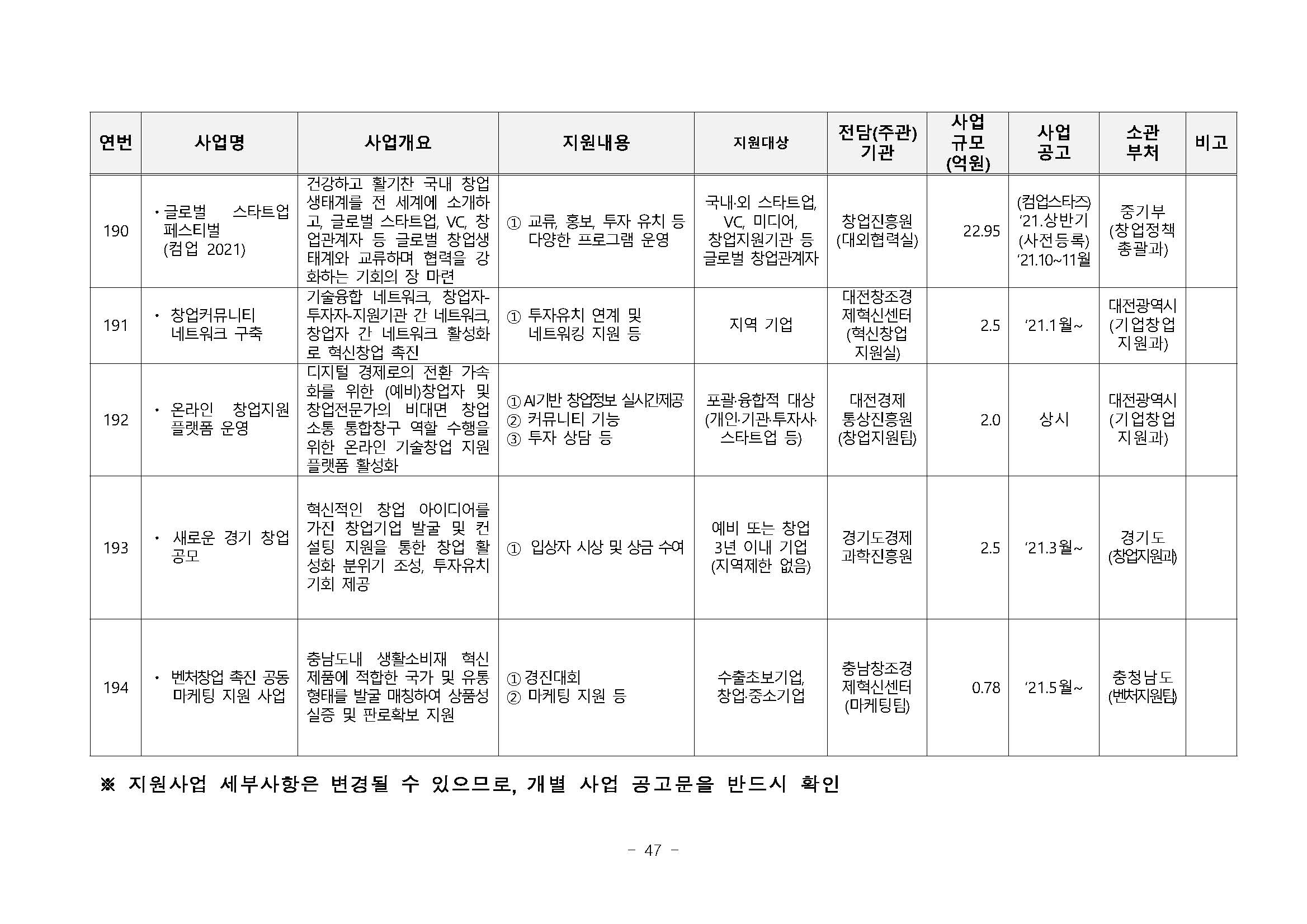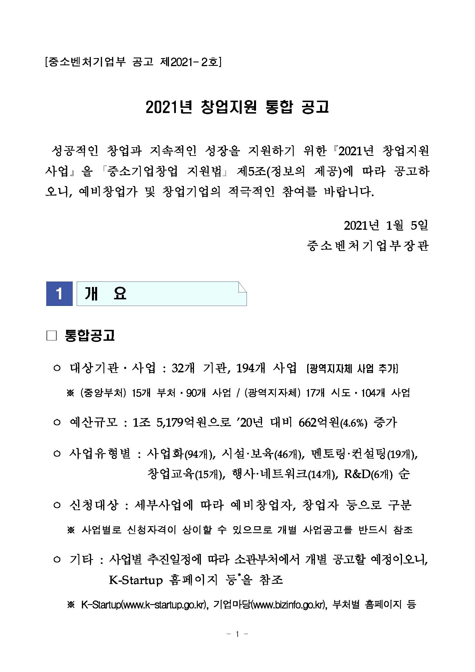 ★2021년도_창업지원사업_통합공고(중기부_공고_제2021-2호).hwp