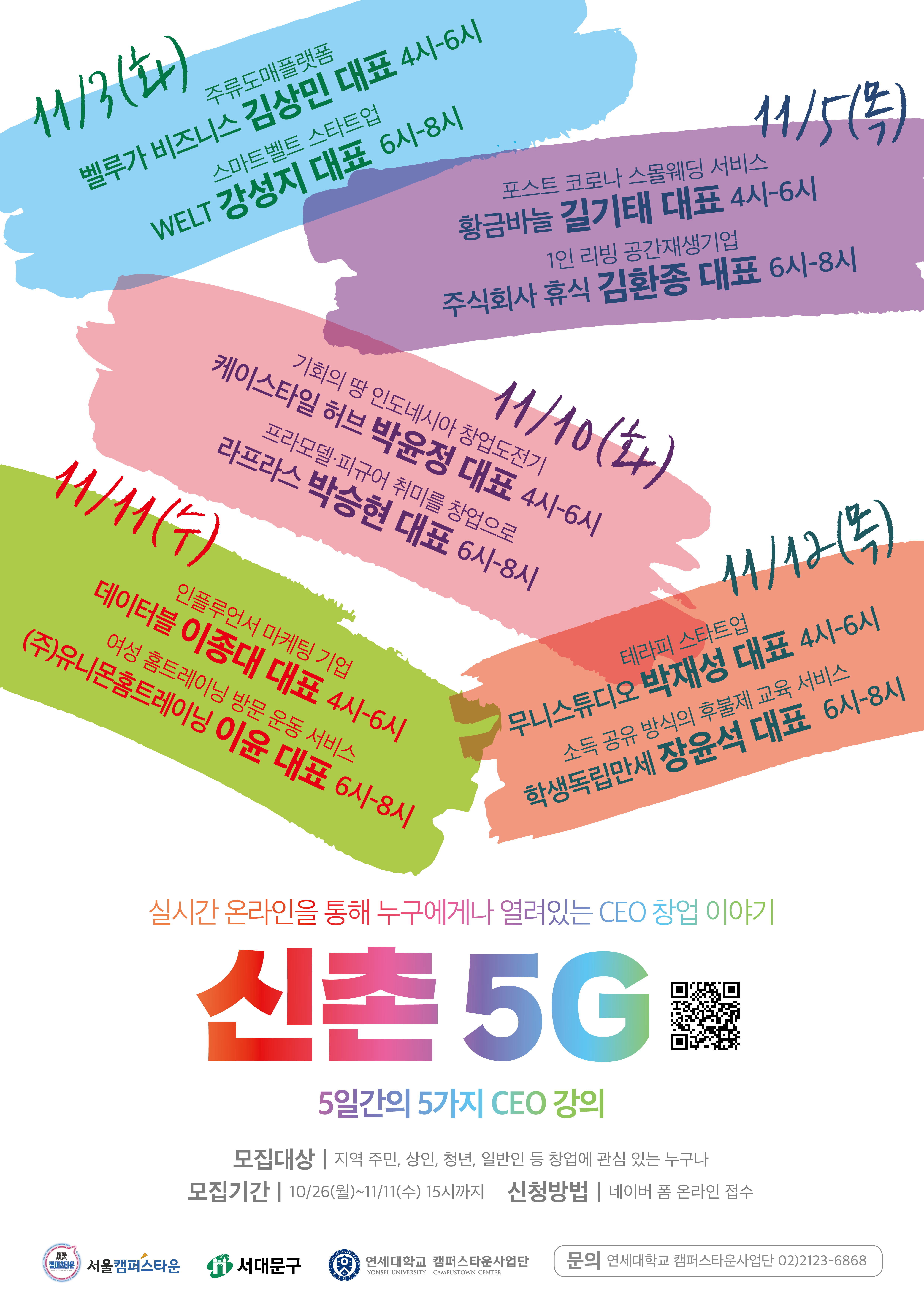[연세대학교 캠퍼스타운사업단] 신촌 5G 신청자 모집 (~11월11일 15시까지)