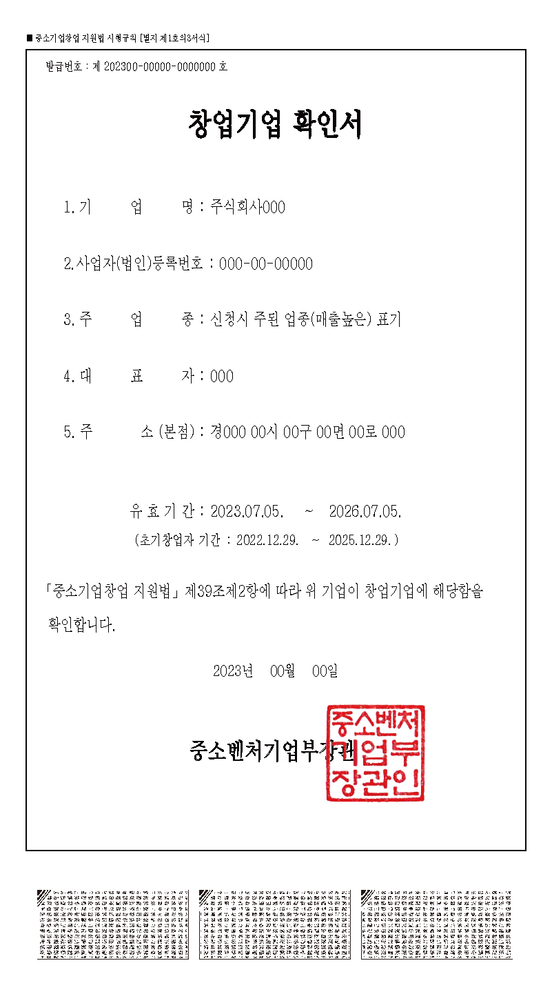 이 모든것을 증빙하는 자료가 [창업기업확인서] 입니다.