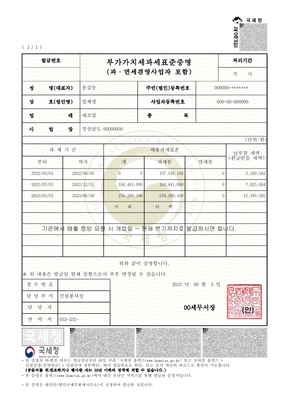 과세표준증명원은 여러분의 기업의 매출정도를 확인하기 위해 발급 받는 것이에요.