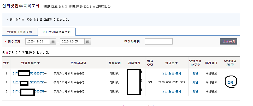여기서 [출력] 버튼을 눌러 다운받으면 되는데